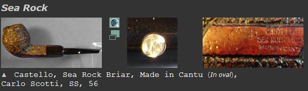 All carved Castello pipes are graded by the number of K’s that are stamped on each piece and are K-graded by SIZE. 1K is the smallest and fairly rare, 2K is small to medium, with 3K or 4K being the most common and ranges from medium to medium large. Large pieces are stamped “G” for giant and extra large pieces are stamped “GG” for double giant. In addition to the number of K’s on a carved Sea Rock piece the shape number is almost always added. As a rule a Sea Rock Castello is stained Black, although recently there have been quite a few coming in stained deep brown and still stamped “Sea Rock”. American Logo’d Sea Rocks are all priced the same to the consumer, although most are 2 or 3 K’ed models. G/GG models are charged at a higher price on American pieces and are basically the same as their European counterparts.