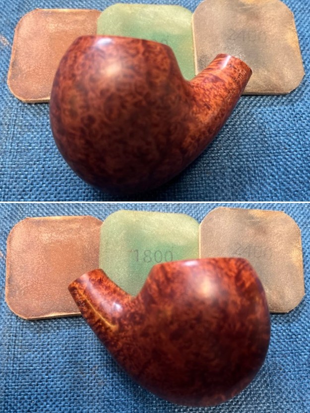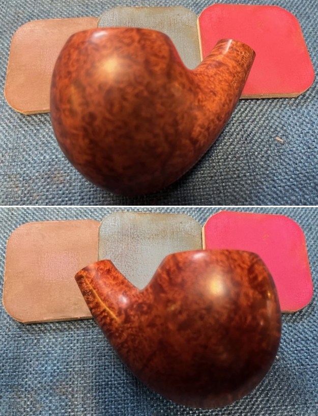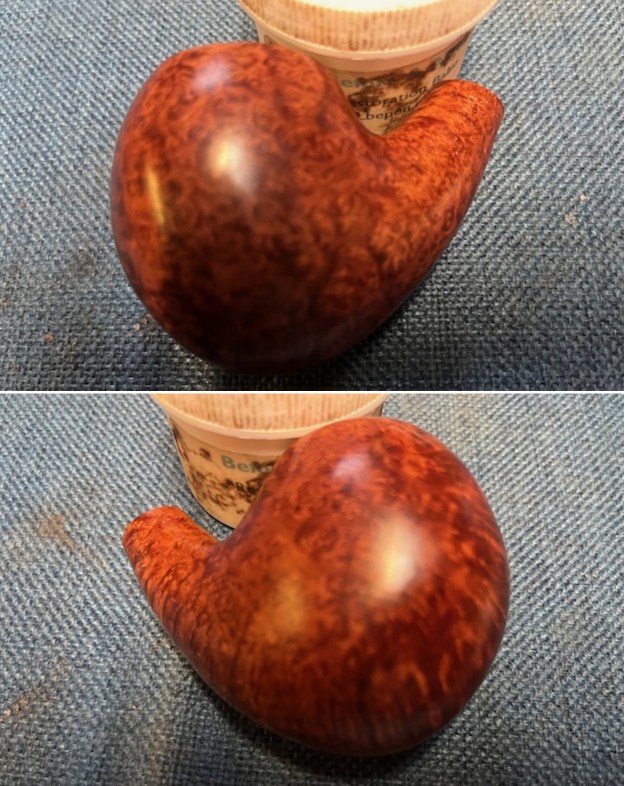 When the pipe arrives here in Vancouver I have a clean pipe and I go over it keeping in mind my assessment shared in the opening paragraph above. Now that I have it in hand I am looking for confirmation of what I saw in the photos as well as any significant structural changes in the bowl and finish as I go over it.