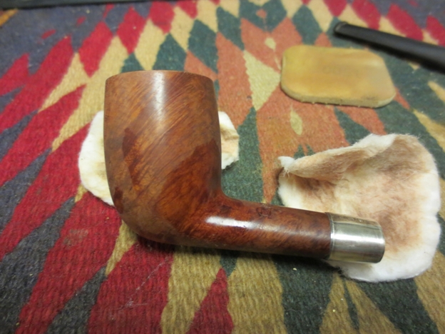 While I was hand buffing the bowl I noticed that the silver band was loose on the shank and rotated freely. I removed the band and put some all-purpose glue on the shank and pressed the band into place. I turned it to align the stamping on the band with the stamping on the shank. It set quite quickly and I polished the silver band with a jeweler’s cloth.