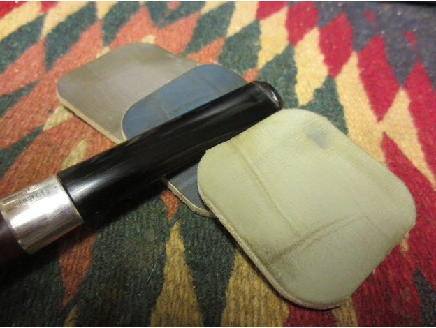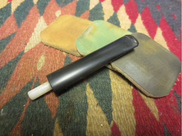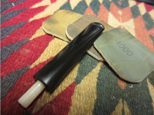 I polished the sanded areas of the stem with micromesh sanding pads – wet sanding with 1500-12000 grit pads. I wiped the stem down after each pad with a damp cloth. I polished it with Before & After Pipe Polish – Fine and Extra Fine. I finished by buffing the stem with Briarville’s No Oxy Oil.