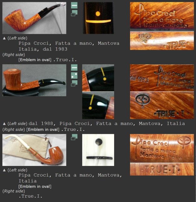 Artisans: Paolo & Gianni. Grading (ascending): Pipa Croci, Amica, True, True I, Quality Street, Starlight, Golden Flame. Production (2007): ~ 3000 pipes/year. Pipa Croci is part of the Molina Group (2012)
