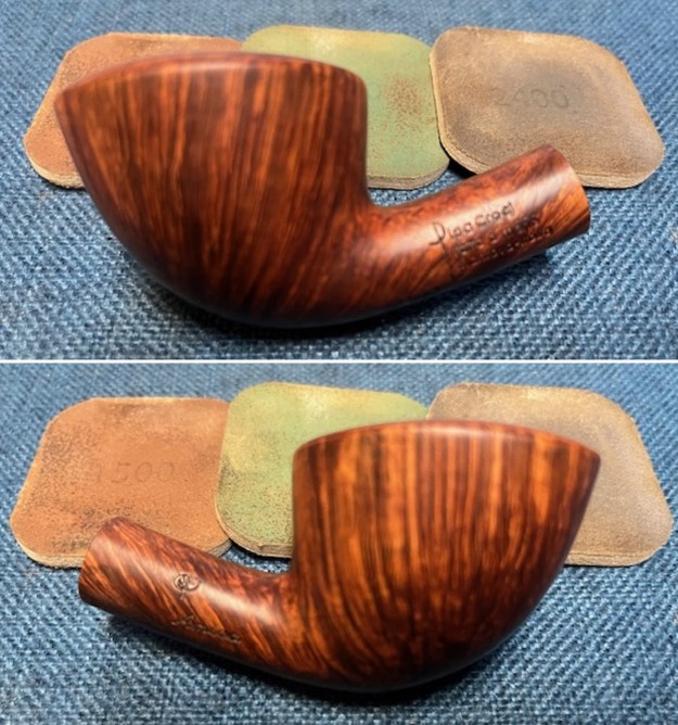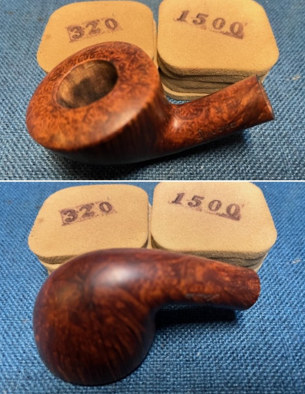 Now it was time to work on the pipe. I sanded the briar with 320-3500 grit sanding pads. I wiped the bowl down with a damp cloth after each sanding pad.