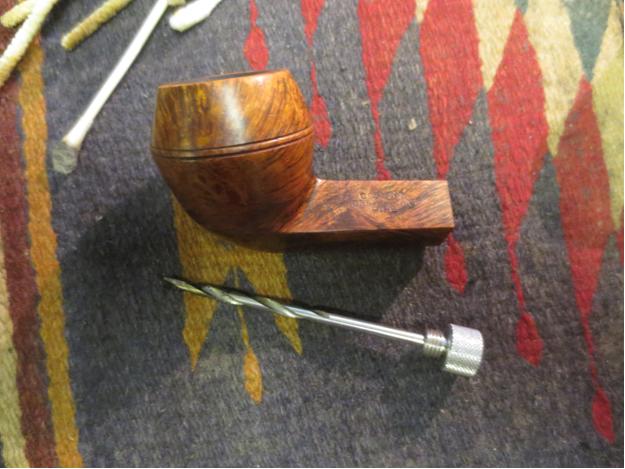 I reamed the bowl with a PipNet pipe reamer using the 2nd and 3rd cutting head to remove the remaining cake back to briar. I followed up with a Savinelli Fitsall pipe knife to remove the remnants of cake. I sanded the walls of the bowl with a piece of 220 grit sandpaper wrapped around a piece of dowel.