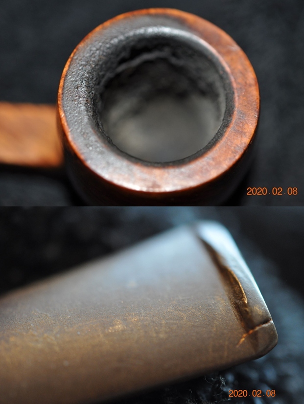 He took photos of the rim top and bowl to give a clear picture of the thickness of the cake and well as the lava and darkening on the front side of the rim top and inner edge. He also took photos of the top and underside of the stem to show the light oxidation and the chatter and tooth marks.