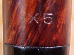 This is again stamped in a circle with “Made” at the top, “In” in the middle, and “London” at the bottom, with “England in a straight line beneath the F/B. I believe this stamp was first used in the export drive in the early 1950s, and I have not seen any pre-WW II Comoy’s stamped in this way.