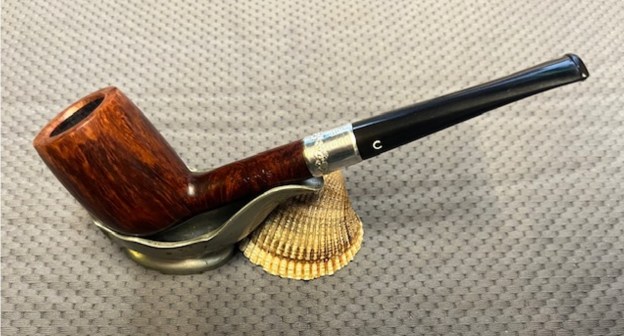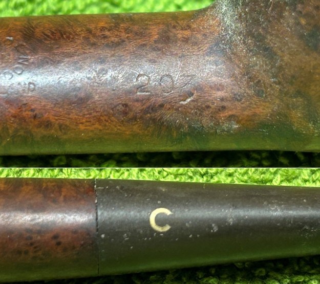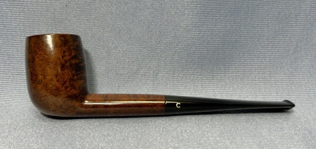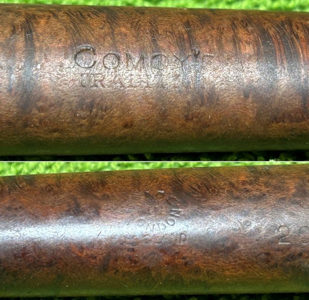 The three-piece “C” on the stem also dates from the 1950s onwards and was discontinued in the early 1980s, when Cadogan took over. So we know this pipe is before the Cadogan era. We are left with a date range of the 1950s to the 1970s. I am making an assumption that because this pipe corresponds to the first stamping variant listed in the guide, it is of an earlier part of that range. However, I have reason to make that assumption. I looked at Greg Pease’s writeup on Comoy’s and his dating information is basically the same as the Pipedia stuff above. Pease, however, adds this important tidbit: