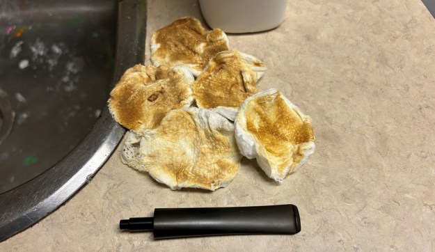 I then decided to ‘de-ghost’ the pipe – that is to say, exorcize the remaining filth from the briar. I filled the bowl and the shank with cotton balls, then saturated them with 99% isopropyl alcohol. I let the stummel sit overnight. This caused the remaining oils, tars and smells to leach out into the cotton.
