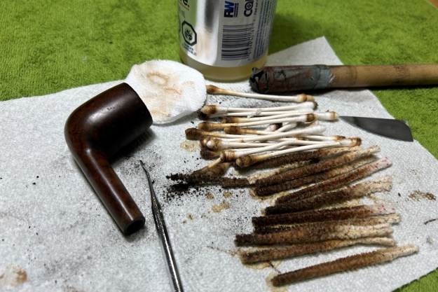 Similar to the stem, I then cleaned the stummel with both pipe cleaners and cotton swabs dipped in lemon-infused 99% isopropyl alcohol. With a pipe this dirty, it took quite a while and much cotton to get clean. Oh, it was so filthy! The previous owner must never have heard of pipe cleaners.