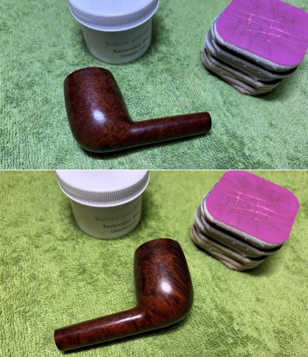 For the final step, I took the pipe to my bench polisher and carefully buffed it – first with a blue diamond compound, then with three coats of carnauba wax. This procedure makes the pipe look its best – the stummel sings and the stem glows.