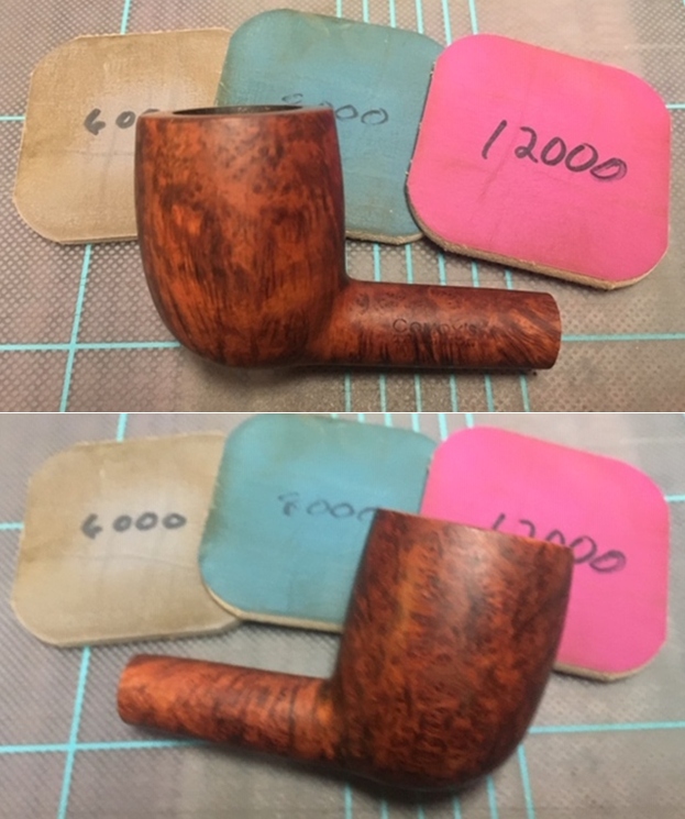I polished the briar on the rim top and the rest of the bowl with micromesh sanding pads – dry sanding it with 1500-12000 grit pads. I wiped the briar down with a damp cloth to remove the sanding dust. The briar really took on a rich shine with the polishing.