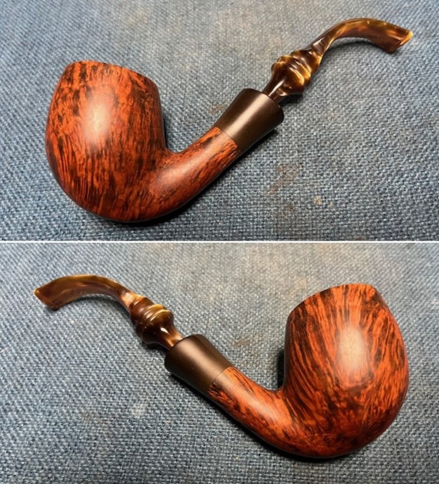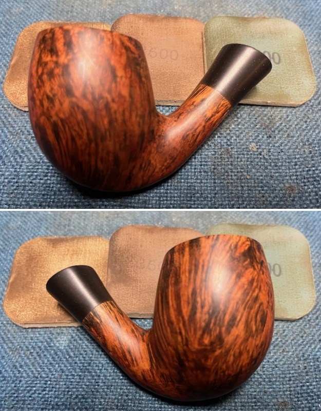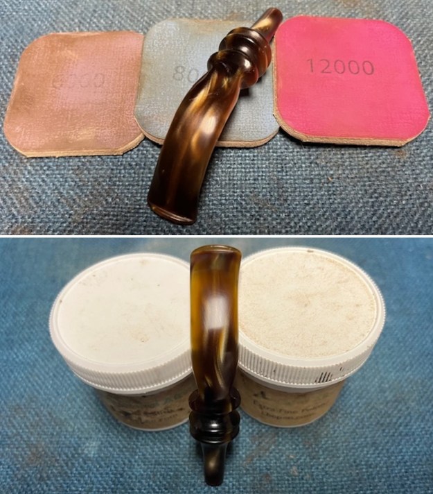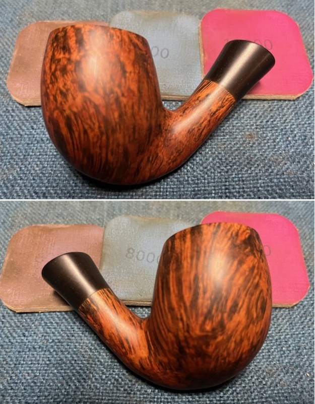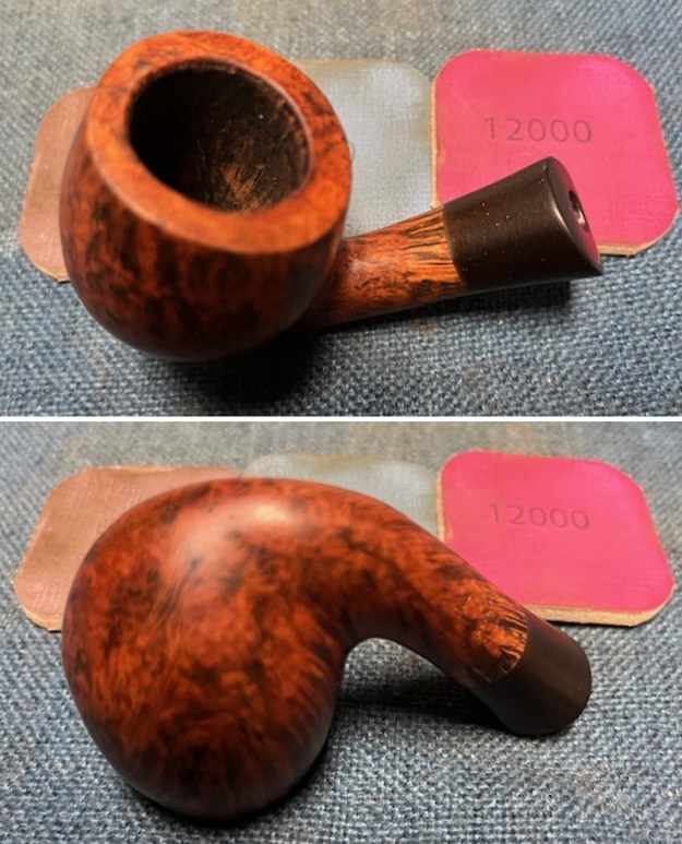 I polished the vulcanite with micromesh sanding pads – 1500-12000 grit pads. I wiped it down with Obsidian Oil after each sanding pad. I used Before & After Pipe Polish – both Fine and Extra Fine to further polish the stem.