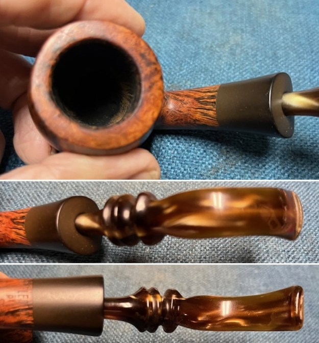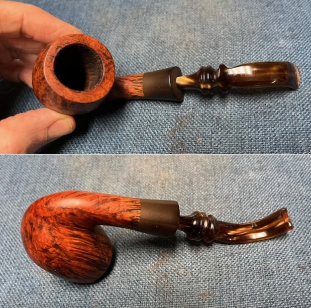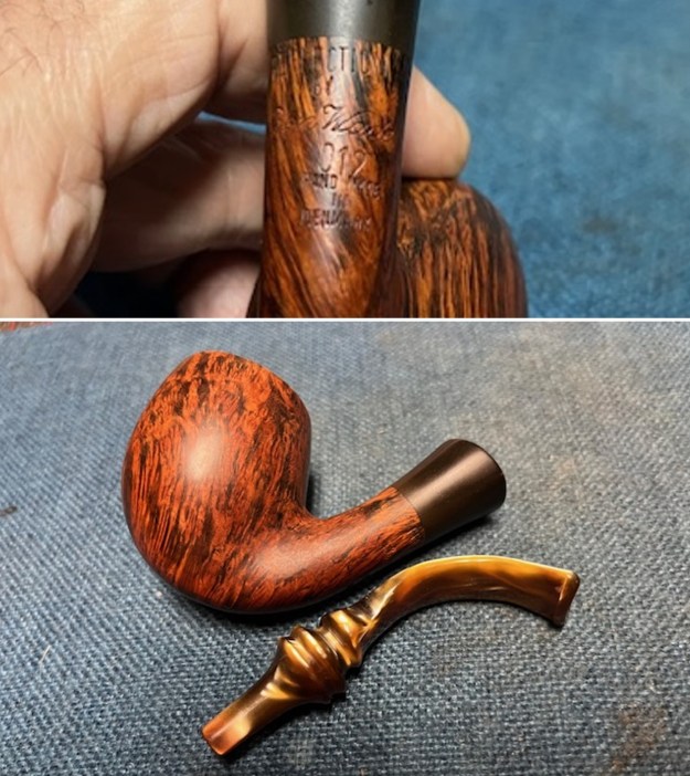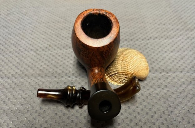 The stamping on the heel of the bowl is clear and readable as noted above. I took a photo of the pipe with the stem removed to give a sense of the proportions of the pipe. It is a real beauty. Interestingly, there was a clean foil inner tube in the tenon.