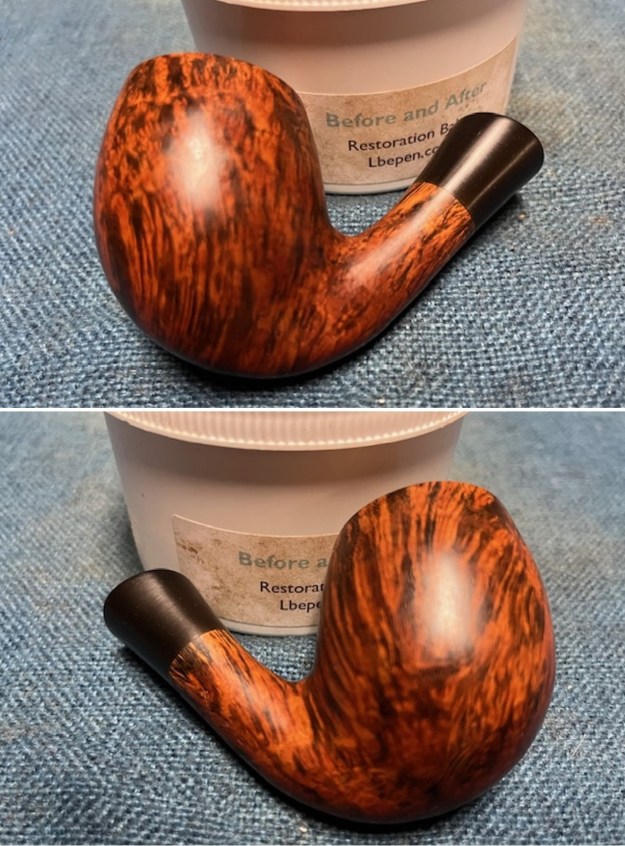 I rubbed the briar down with Before & After Restoration Balm. I worked it into the briar with my fingertips and a horsehair shoe brush to work it into the nooks and crannies of the sandblast finish. The product works to clean, enliven and preserve the briar. I let it sit for 10 minutes then I buffed it with a cotton cloth to deepen the shine. The briar really comes alive with the balm.