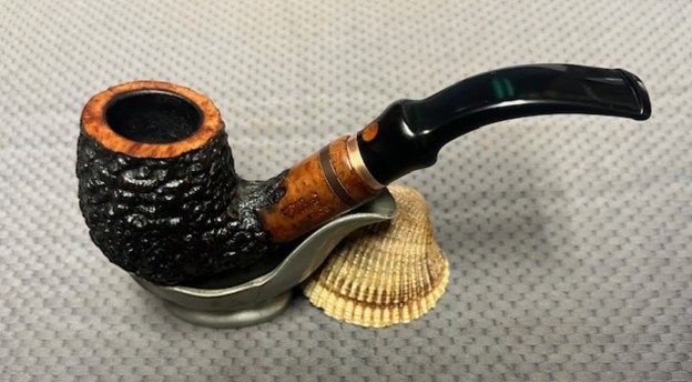 …All carved Castello pipes are graded by the number of K’s that are stamped on each piece and are K-graded by SIZE. 1K is the smallest and fairly rare, 2K is small to medium, with 3K or 4K being the most common and ranges from medium to medium large. Large pieces are stamped “G” for giant and extra-large pieces are stamped “GG” for double giant. In addition to the number of K’s on a carved Sea Rock piece the shape number is almost always added. As a rule a Sea Rock Castello is stained Black, although recently there have been quite a few coming in stained deep brown and still stamped “Sea Rock”. American Logo’d Sea Rocks are all priced the same to the consumer, although most are 2 or 3 K’ed models. G/GG models are charged at a higher price on American pieces and are basically the same as their European counterparts.