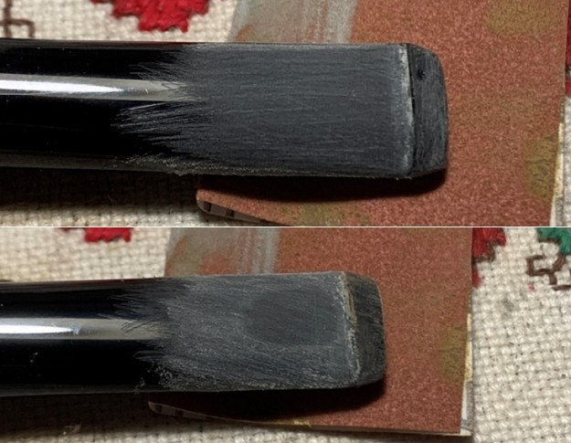 I lightly polished the rim top with micromesh sanding pads – dry sanding with 1500-1200 grit pads and lightly wiping the rim top down with a damp cloth after each pad. It cleaned up very well.