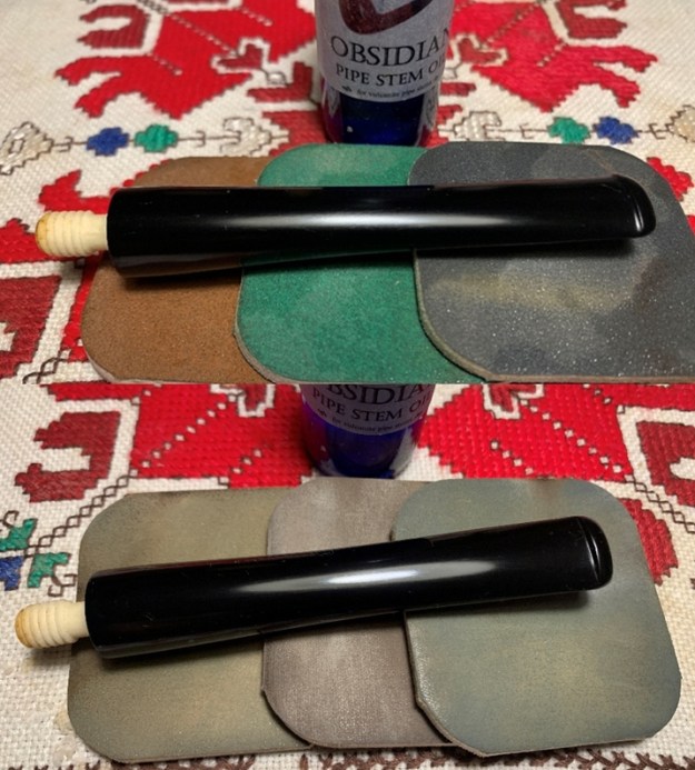 I polished the acrylic stem with micromesh sanding pads – dry sanding with 1500-12000 grit pads. I wiped the stem down after each pad with some Obsidian Oil. I finished polishing it with some Before & After Pipe Stem polish – both Fine and Extra Fine. I wiped the stem down with a final coat of Obsidian Oil. The stem took on a rich glow.