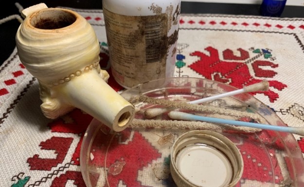 I cleaned out the dirty internals in the airway in the shank, the mortise and the airway in the stem with pipe cleaners, cotton swabs and 99% isopropyl alcohol. It took a few to get it cleaned but eventually the cleaners came out clean. I also wiped down the top of the rim with a cotton pad dampened with alcohol and was able to remove the lava coat.