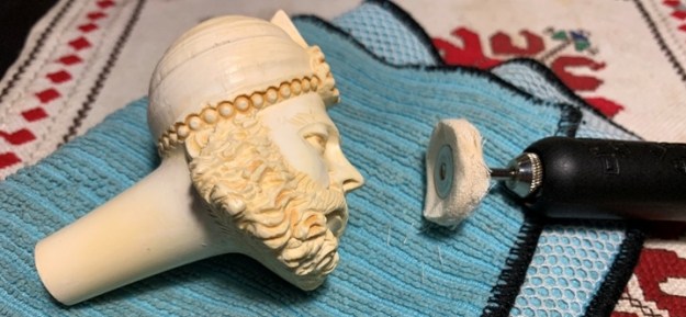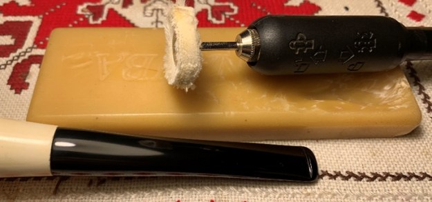 I applied several coats of Clapham’s Beeswax/Carnauba mix to the surface of the meerschaum. I set it aside to dry between coats and gave it a brisk buff with a soft cloth after each one dried.