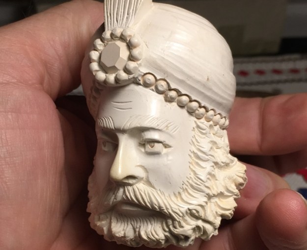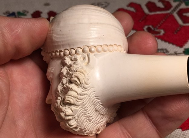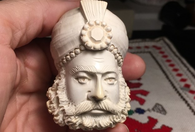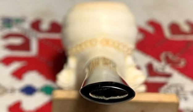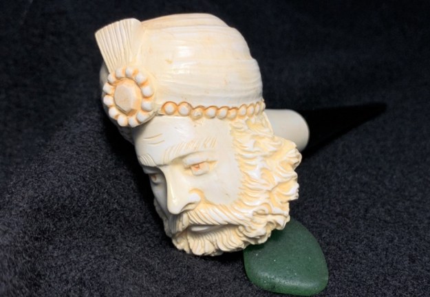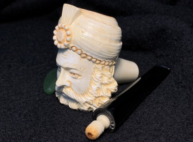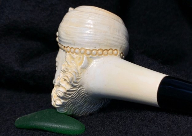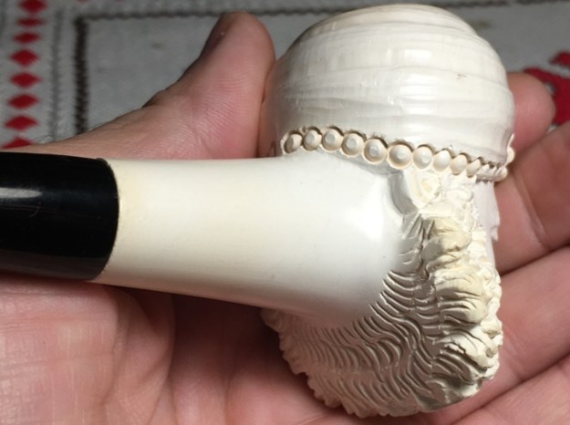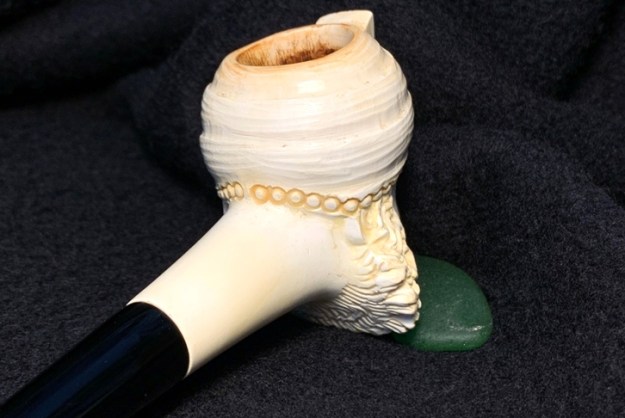 Each pipe is deftly cut by hand and has its own character, and colours gradually as it is smoked, taking on a rich brown colour with the years. The meerschaum is impregnated with wax which helps to give it the beautiful velvety finish for which meerschaum pipes are famous. Each pipe has its own individual character given to it by the artisan who made it.
