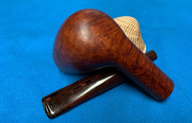 I the polished stem and the Meerschaum Bent Egg bowl with Blue Diamond to polish out the remaining small scratches and raise the shine. I gave the Cumberland stem several coats of carnauba wax and the bowl several coats of Clapham’s Beeswax/Canuaba Wax then buffed the pipe with a clean buffing pad to raise the shine. I hand buffed it with a microfiber cloth to deepen the shine. The pipe polished up pretty nicely. This turned out to be a beautiful Fikri Baki Meerschaum Danish Egg. The finished pipe is shown in the photos below. The dimensions are Length: 6 inches, Height: 2 ¼ inches, Outside diameter of the bowl: 1 ½ inches long by 1 ¼ inches wide, Chamber diameter: 7/8 of an inch. The weight of the pipe is 1.94 ounces/53 grams. Thanks for walking through the restoration with me as I worked this beautiful F. Baki Meerschaum Danish Egg. I will be sending it back very soon to the pipeman who asked me to restore it. Thanks for looking.