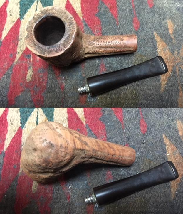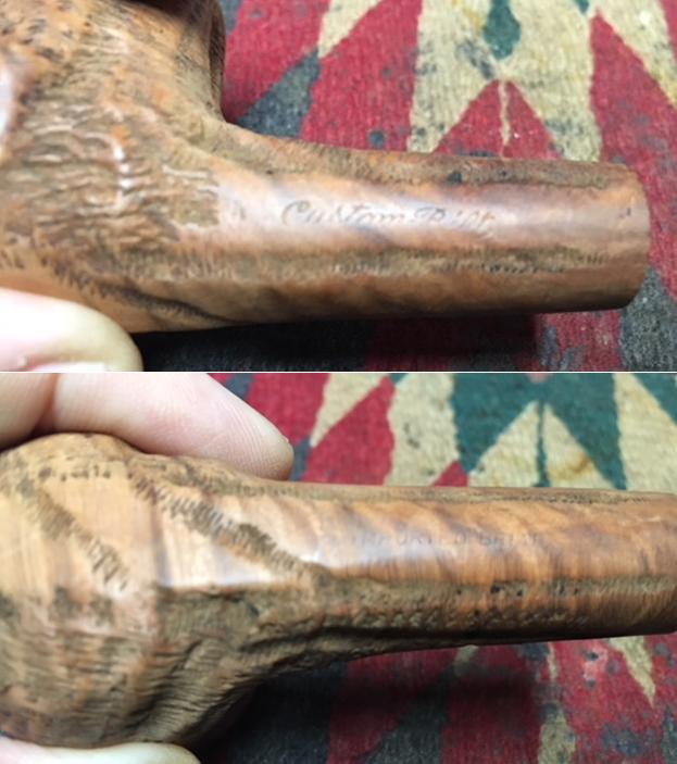 Jeff took photos of the sides and the heel of the bowl to give a picture of what the briar looked like. The rustication pattern around the bowl is instantly recognizable as done by Custom-Bilt. The last photos shows a stinger in the tenon but is has disappeared since it arrived here.