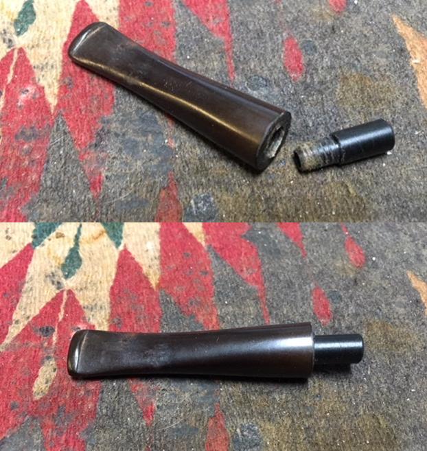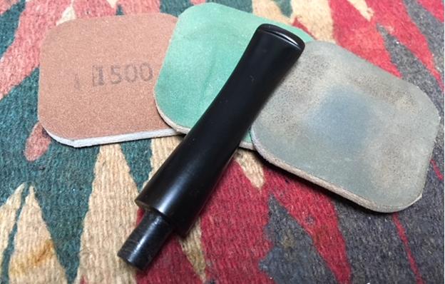 I polished the stem with Denicare Mouthpiece Polish to take out the oxidation at the button edge and on the end of the mouthpiece. I also worked hard to scrub it from the surface of the stem at the tenon end.