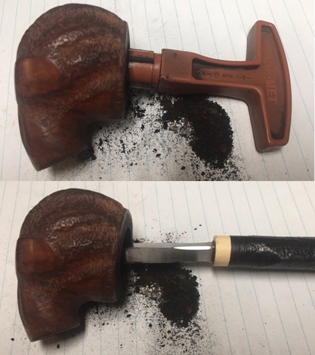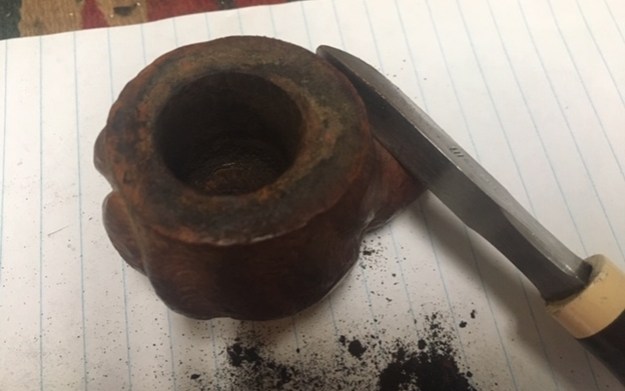 As you can see, it’s a handsome and rugged Custombilt bulldog, from the 1970s or ‘80s. My cousin-in-law did most of the cleaning already and did some restoration work on the stem, so I will be tackling the stummel only. For the most part, the pipe is in decent shape, but there are two major gouges on the side of the bowl. These gouges are going to be tricky to repair for four reasons: