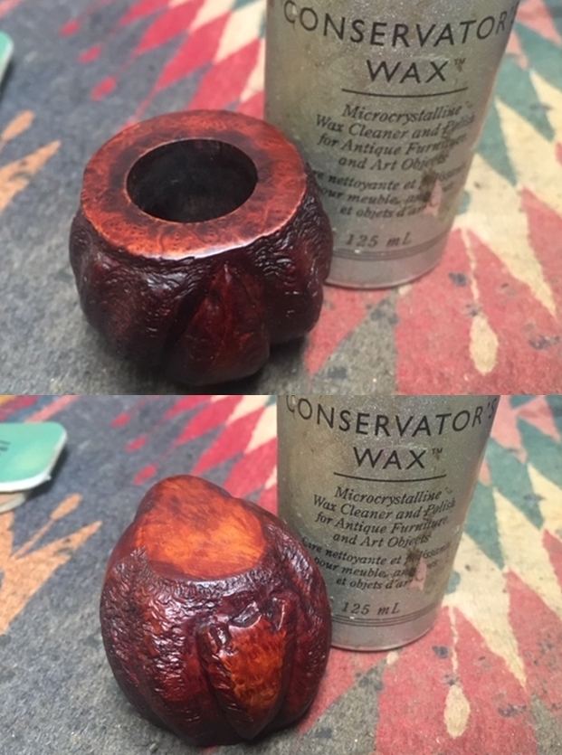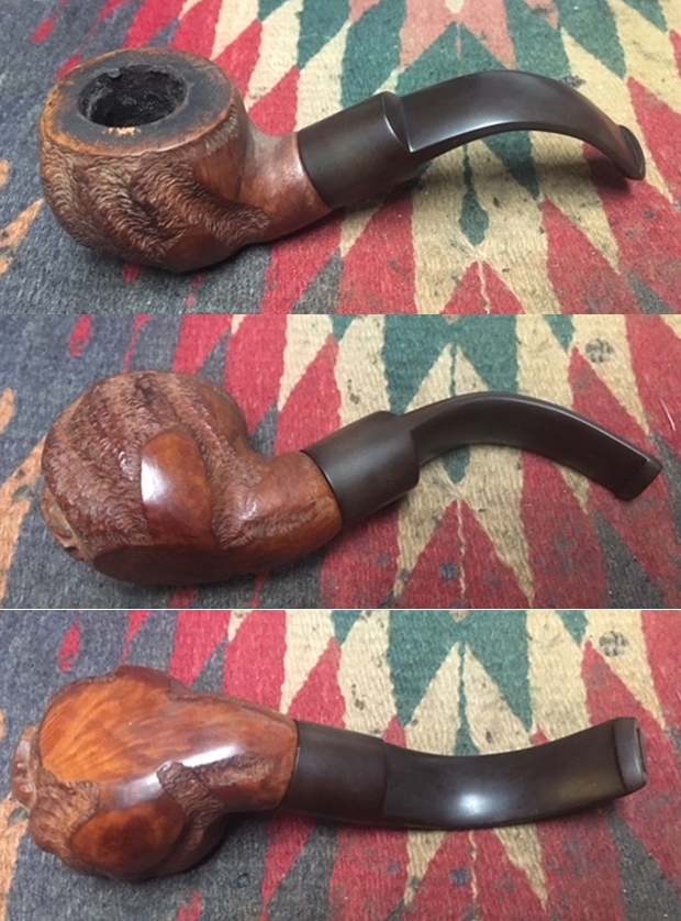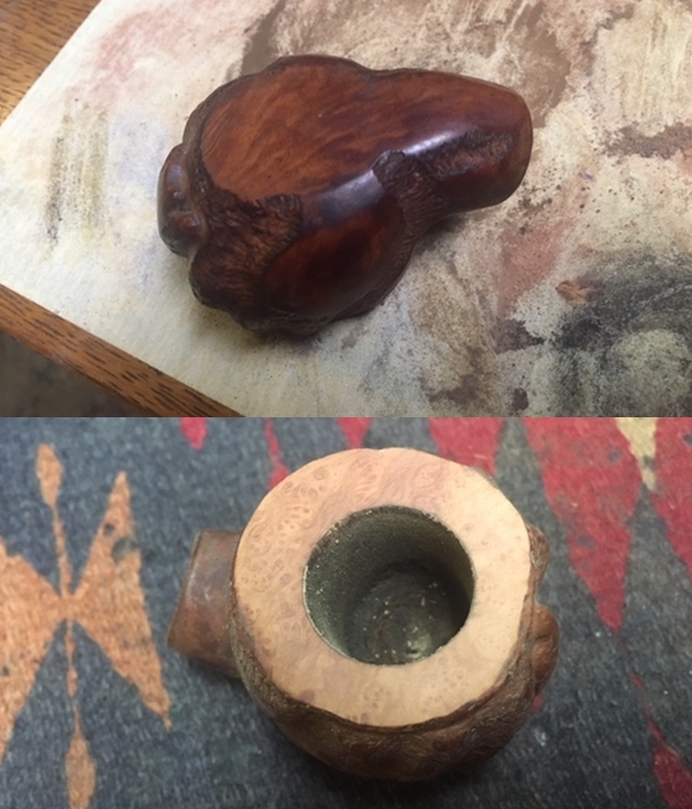Every once in a while, my cousin-in-law sends me a pipe to repair. He hunts for pipes at antique shops and fairs, etc., and when he finds one that’s especially tricky to repair, he sends it my way! When he sent this particular pipe to me, he described it as a “crazy guy project”. Ahem. Well, crazy or not, I’m taking on the challenge.
