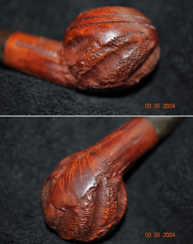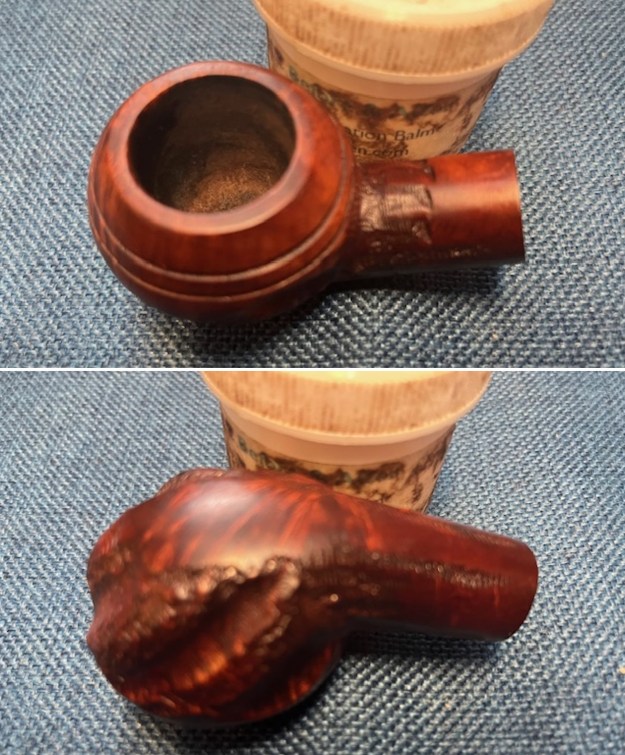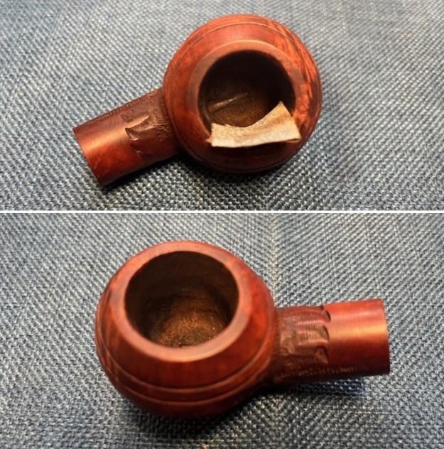 Jeff took some photos of the sides and heel of the bowl to show the condition of the finish on the bowl. The twin rings and bowl cap are quite well done and you can see the nicks and damage in the briar.