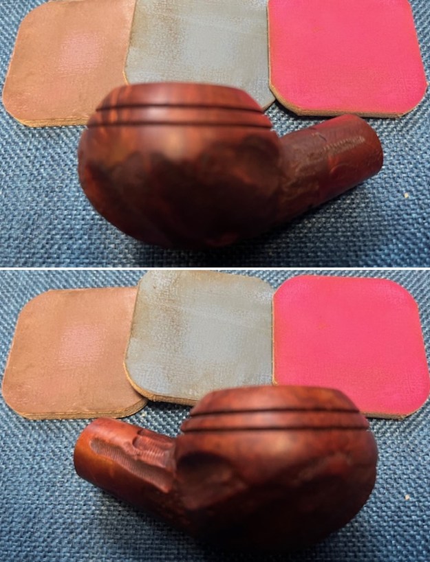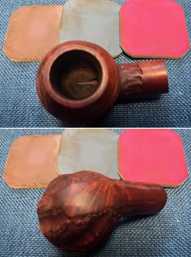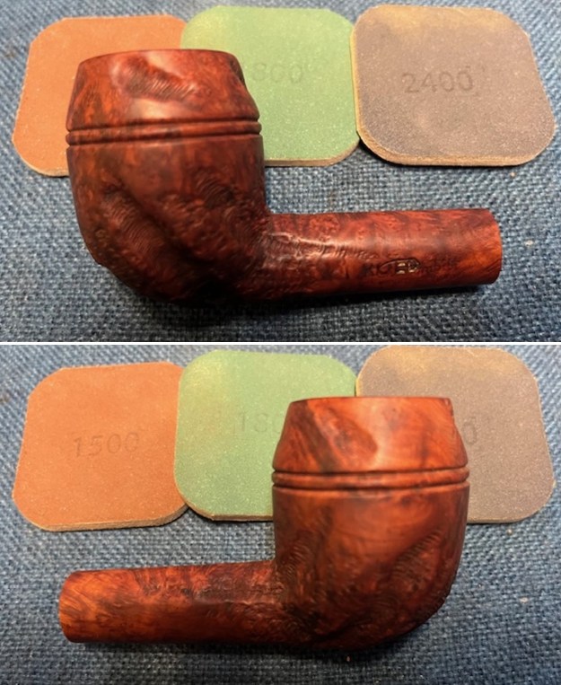 I sanded the bowl and shank with 320-3500 grit sanding pads. I wiped the bowl down after each sanding pad to remove the debris. The pipe was beginning to look much better.