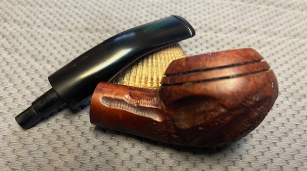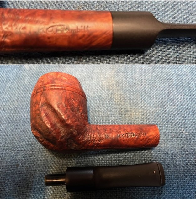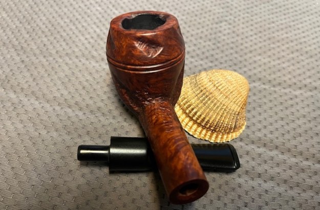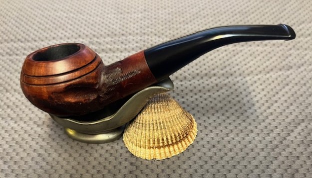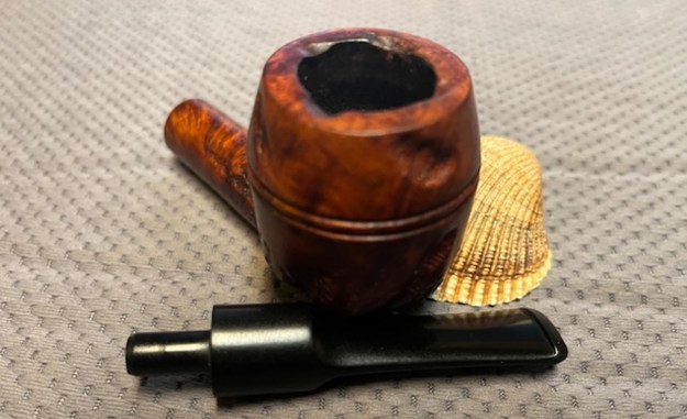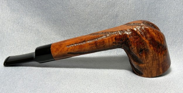 The stamping on top left side of the shank and the top right side is clear and readable. It is stamped as noted above. It is faint in spots but still clear. The logo on the left topside of the saddle is also clear. I removed the stem and took a photo of the pipe to give a sense of the whole. The wide taper stem is nice and the photo shows the proportions of the pipe.