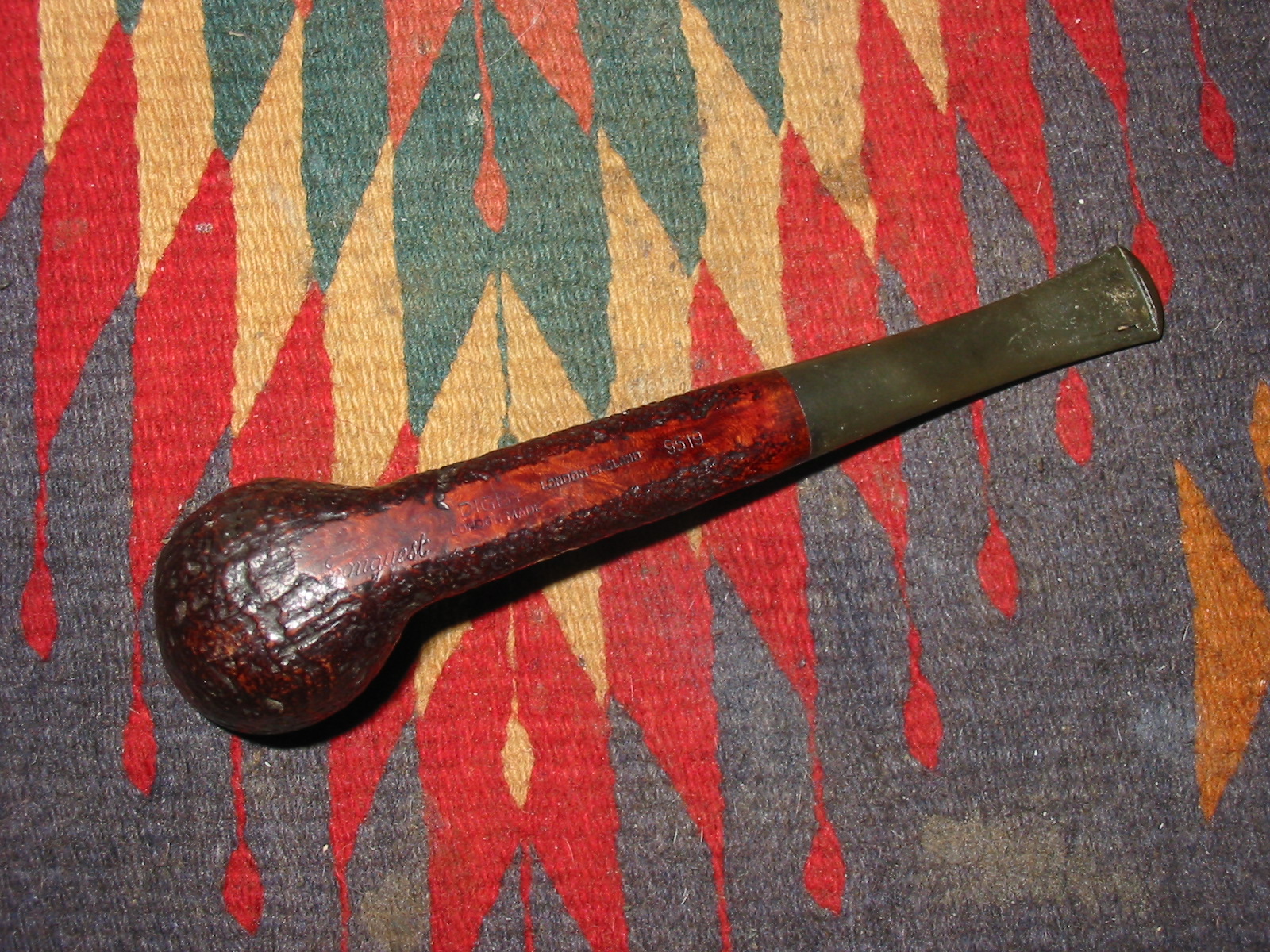 Digby pipes were made by GBD as a second line for pipes with too many flaws to carry the primary brand. They appeared, in the 1976 catalog, in either a smooth walnut finish or a dark sandblast. Digby pipes were openly sold as being made “By the Makers of the Famous GBD”. For more information see GBD.