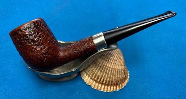 Introduced in 1979. Cumberland is another sandblast with a brown stain and a brindle stem (the material is more commonly called ‘Cumberland’ these days, thanks to Dunhill’s influence and the success of the finish over the past quarter-century). Originally, the Cumberland always featured a smooth brown rim, but in the current production the rim is sometimes smooth, sometimes sandblasted. Occasionally, a straight grain blast is finished with a Cumberland stain and a “Shilling Grain,” similar to the “Ring Grain,” resulting in a new variation on the traditional sandblast. The Shilling series is named for the British coin: the sandblast looks like a stack of shillings. Named after the warehouse on Cumberland Road. The old pipes that inspired this finish were found there.