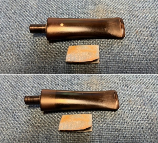 I sanded the stem with 320-3500 grit 2×2 inch pads. I wiped the stem down with an Obsidian Oil cloth after each sanding pad.