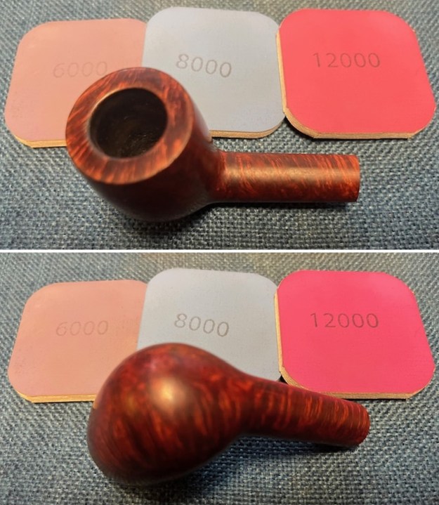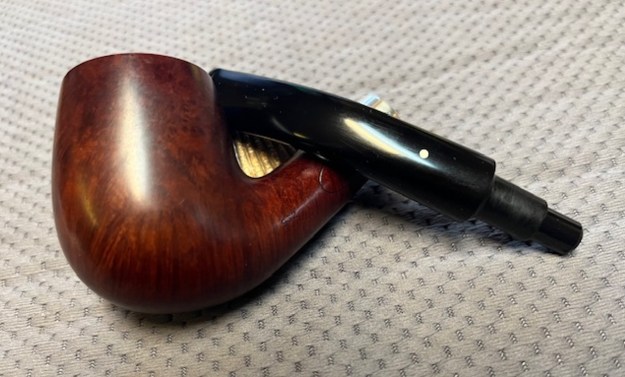 I polished the vulcanite with micromesh sanding pads – 1500-12000 grit pads. I wiped it down with Obsidian Oil after each sanding pad. I used Before & After Pipe Polish – both Fine and Extra Fine to further polish the stem.