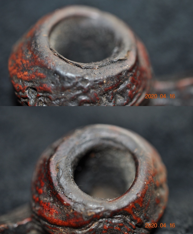I took photos of the bowl and rim top to show the thickness of the cake and the lava coat on the rim top. There was some tobacco debris in the bottom of the bowl. The stem photos show the condition of the taper stem ahead of the button.