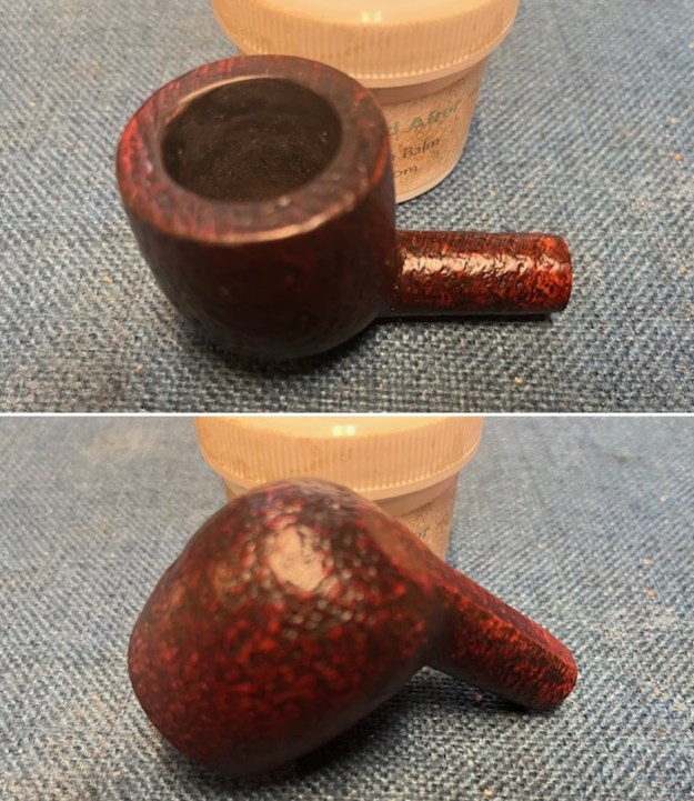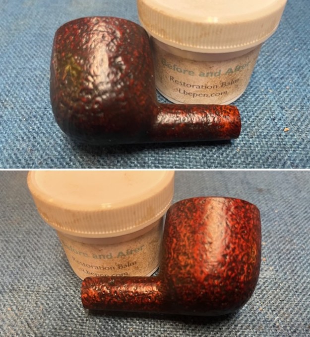 I rubbed the briar down with Before & After Restoration Balm. I worked it into the briar with my fingertips and a horsehair shoe brush to work it into the nooks and crannies of the sandblast finish. The product works to clean, enliven and preserve the briar. I let it sit for 10 minutes then I buffed it with a cotton cloth to deepen the shine. The briar really comes alive with the balm.