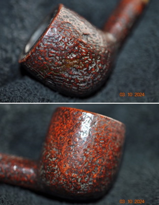 This 1972 Dunhill Shell Briar 60F/T Gold Spigot Billiard has a beautiful, unique Dunhill Sandblast finish made in 1972. The rich Shell Briar finish that is identified with some great grain around the bowl and shank. It has some great rugged sandblast that Dunhill specialized in making. The polished 14K gold ferrule and stem cap look very good. The polished black vulcanite spigot stem adds to the mix. I put the stem back on the bowl and buffed the pipe with Blue Diamond on the buffing wheel being careful to not buff the stamping. I gave the bowl and the stem multiple coats of carnauba wax on the buffing wheel and followed that by buffing it with a clean buffing pad. I hand buffed the pipe with a microfiber cloth to deepen the shine. The finished Dunhill Shell Briar 60F/T Gold Spigot Billiard is quite nice and feels great in the hand. Give the finished pipe a look in the photos below. The dimensions of the pipe are Length: 5 ¾ inches, Height: 1 ¾ inches, Outside diameter of the bowl: 1 ¼ inches, Chamber diameter: ¾ of an inch. The weight of the pipe is 33 grams/1.16 ounces. This one will be going into my own personal collection. Thanks for walking through the restoration with me as I worked over another beautiful pipe Thanks for your time.
