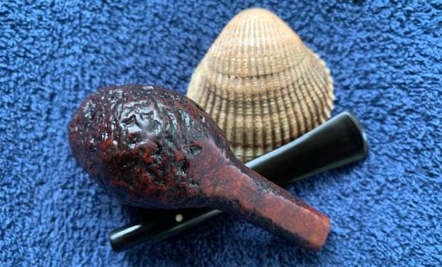 A deep craggy sandblast with a black stain finish (usually made using Algerian briar) – the color of the stain used has varied over the years. Although there is some doubt as to them being the first to sandblast pipes, Dunhill’s Shell pipes, and the sandblasting techniques developed to create them are considered one of Dunhill’s greatest and most lasting contributions to the art of pipe making.