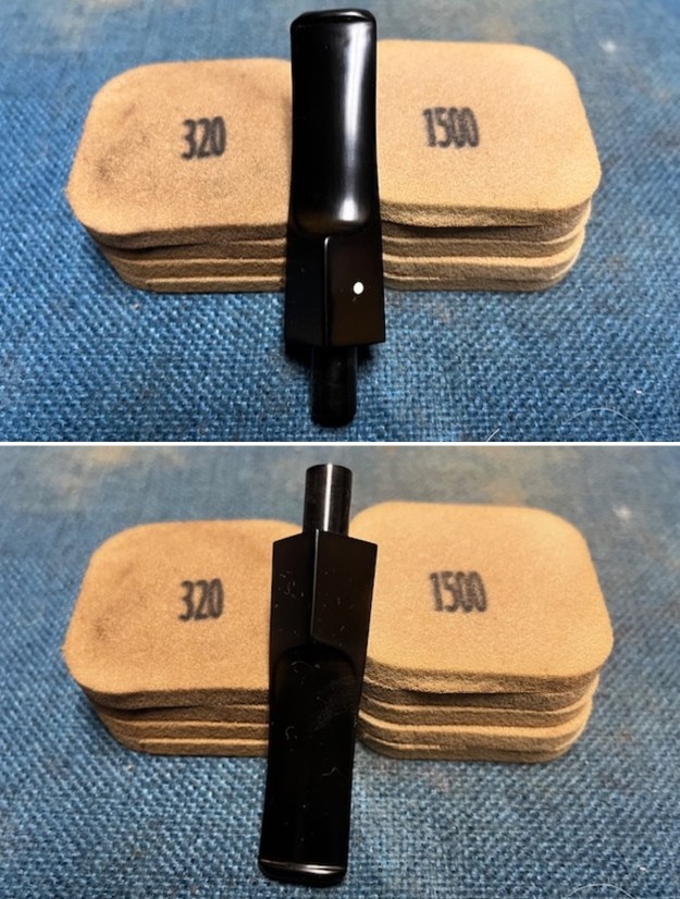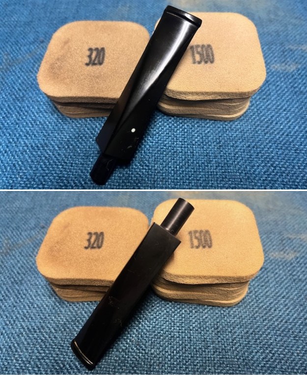 I sanded the stem with 320-3500 grit 2×2 inch pads. I wiped the stem down with an Obsidian Oil cloth after each sanding pad.