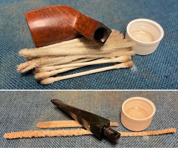 I cleaned out the inside of the shank and the airway in the stem with alcohol, cotton swabs and both bristle and regular pipe cleaners.