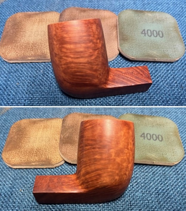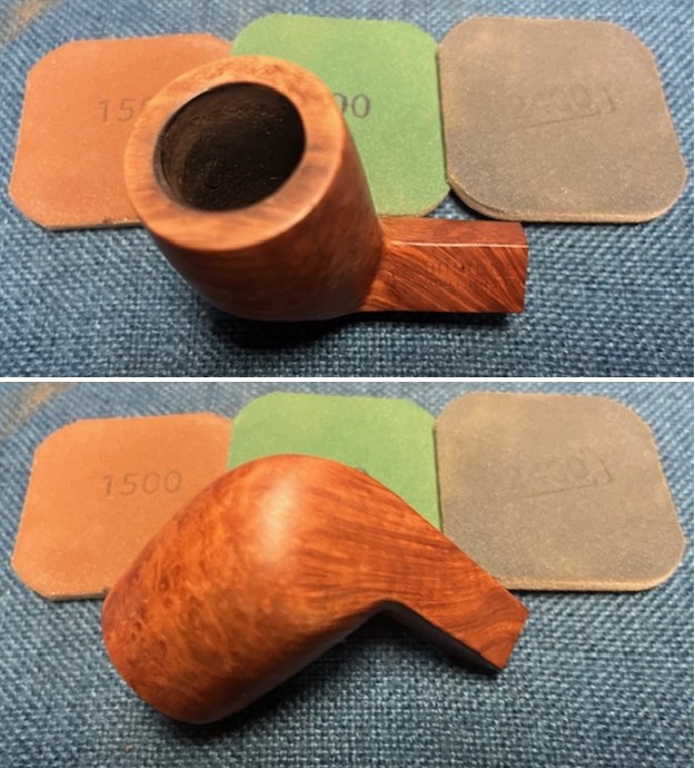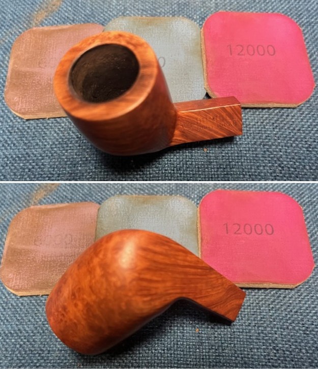 I polished the briar with 1500-12000 grit micromesh sanding pads to develop the shine. It began to look very good. It had a rich shine in the finish.