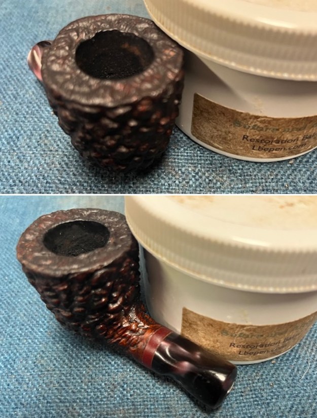 I worked some Before & After Restoration Balm into the briar with my finger tips and a horsehair shoe brush. The product is a great addition to the restoration work. It enlivens, enriches and protects the briar while giving it a deep glow. It is a product I use on every pipe I restore.