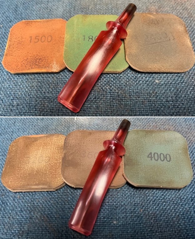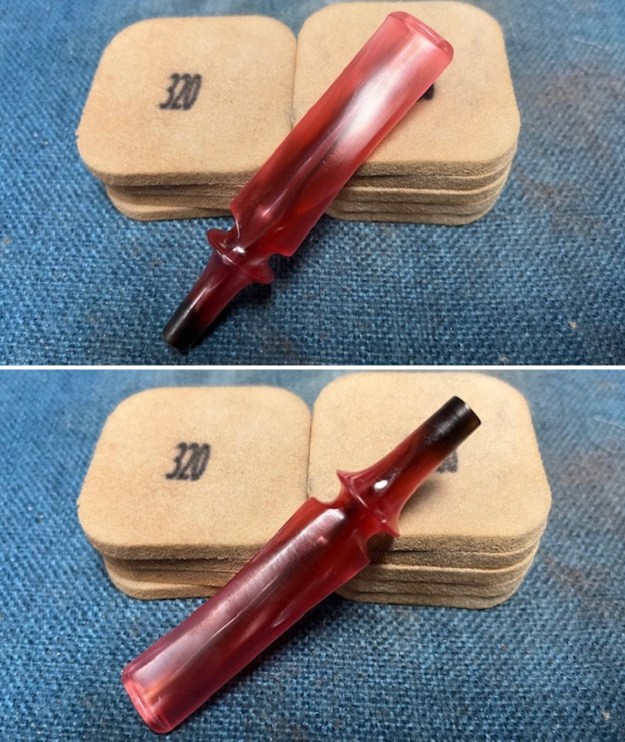 I sanded the stem with 320-3500 grit 2×2 inch sanding pads to smooth out the scratching and remaining tooth marks and chatter. I wiped it down with a damp cloth to remove the sanding debris. The stem is looking very good.