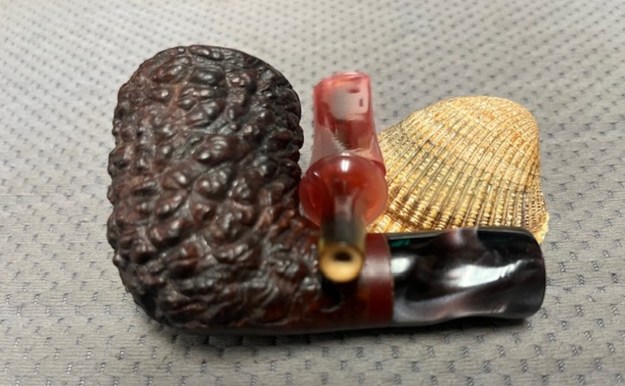 The next series of photos show the condition of the finish on the bowl. The pebble, or coral rusticated finish that Edwards put on the pipe was worn but quite unique. The rim top showed some different style of rustication. There was a smooth ring around the shank end ahead of the acrylic shank extension.