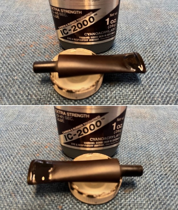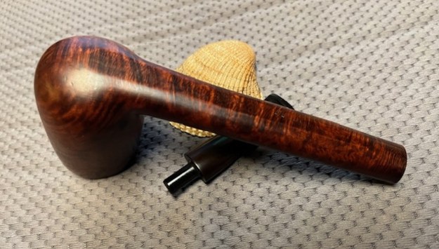 Armed with that information I turned to work on the pipe itself. Jeff had done a great job cleaning up the pipe as usual. He cleaned up the inside of the bowl with a PipNet reamer and a Savinelli Fitsall Pipe Knife. The bowl walls looked very good. He scrubbed the interior of the bowl and shank with pipe cleaners, cotton swabs and alcohol to remove the tars and oils. He scrubbed the exterior of the pipe with Murphy’s Oil Soap and a tooth brush to remove the grime from the finish. He worked on the rim top lava and darkening with the soap and tooth brush. He scrubbed the inside of the stem with alcohol and pipe cleaners. He scrubbed the exterior with Soft Scrub and then soaked it in Briarville’s Pipe Stem Deoxidizer. He washed it off with warm water to remove the deoxidizer. The pipe looked far better. I took photos of the pipe when I received it before I started working on it. I took photos of the bowl and rim top to show how clean it was. The top and the inner edge of the rim show some darkening, nicks and scratches. The stem looks clean of debris and grime. There are tooth marks and chatter on both sides. There are also tooth marks on the underside of the stem.I took photos of the stamping on the top and undersides of the shank. The stamping is clear and readable (though fainter on the underside). I took a photo of the pipe with the stem removed to show the overall look of stem, tenon and profile of the pipe. I started my work on the pipe by addressing the damage on the inner edge of the rim. I used a folded piece of 220 grit sandpaper to smooth out the roughness. I then used 220 grit sandpaper and a wooden ball to give the inner edge of the bowl a slight bevel. It looked much better at this point in the process. I sanded the briar rim top and the sides of the bowl with 320-3500 grit sanding pads. I wiped the bowl down with a damp cloth after each pad. By the time I finished with the 3500 grit pad the briar had taken on a rich glow. I polished the briar bowl and shank with micromesh sanding pads – dry sanding with 1500-12000 grit sanding pads. I wiped it down with a damp cloth after each pad to remove the debris. The bowl took on a rich glow. I rubbed the bowl down with Before & After Restoration Balm. I worked it into the surface of the briar with my fingertips and a horsehair shoe brush to clean, enliven and protect it. I let the balm sit for 10 minutes and then buffed with a cotton cloth and shoe brush to raise the shine. Mark Hoover’s Balm is a product that I have come to appreciate and one I use on every pipe I have been working on. I set aside the bowl and turned my attention to the stem issues. I took photos of the stem surface to show the deep tooth marks on the top and the small holes on the underside of the stem just ahead of the button.I greased a pipe cleaner with Vaseline and inserted it below the bite throughs on the underside of the stem surface to keep the repair out of the airway in the stem. I filled in the deep tooth marks on the topside of the stem and the bite throughs on the underside with Black rubberized CA glue. I set it aside to let the glue cure. Once the repairs cured I used a file to flatten out the repairs and start blending them into the stem. surface. I sanded it with a folded piece of 220 grit sandpaper to flatten it further. I sanded it with 320-3500 grit sanding pads to further blend them in and smooth out the surface of the stem.I polished the vulcanite with micromesh sanding pads – 1500-12000 grit pads. I wiped it down with a damp cloth after each sanding pad. I used Before & After Pipe Polish – both Fine and Extra Fine to further polish the stem. I put the stem back on the Fischer Imperial Long Canadian and took it to the buffer. I worked it over with Blue Diamond to polish out the remaining small scratches. I gave the bowl and the stem several coats of carnauba wax and buffed the pipe with a clean buffing pad to raise the shine. I hand buffed it with a microfiber cloth to deepen the shine. The pipe polished up really well and the bevelled rim top looked good. I was happy with the look of the finished pipe. The photos below show what the pipe looks like after the restoration. The long shank tall Canadian is a beautiful and unique take on a classic shape. The polished vulcanite taper stem looks really good with the browns of the briar. The dimensions of the pipe are Length: 7 inches, Height: 2 ¼ inches, Outside diameter of the bowl: 1 ¼ inches, Chamber diameter: 7/8 of an inch. The weight of the pipe is 1.90 ounces/54 grams. This is another pipe that I will be putting it on the rebornpipes store in the American Pipe Makers Section shortly, if you are interested in adding it to your collection. The long shank and tall bowl look and feel great in the hand. This one should be a great smoker. Thanks for walking through the restoration with me on this beauty!