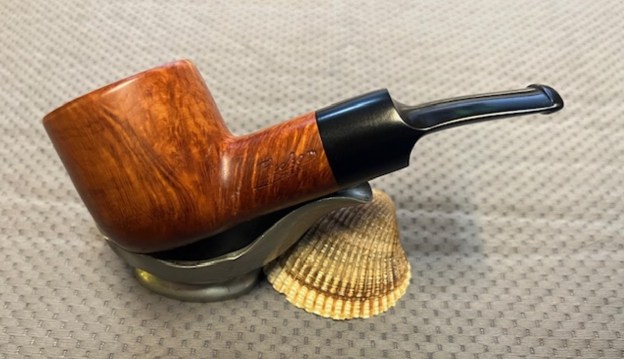 Gustav Fischer was pipe maker for “The House of Fischer’, which was located in Orchard Park, NY, near Buffalo. The Fischer family apparently made pipes for six generations, starting in Germany and continuing in the United States until the 1970s. Their literature from 1956 said that all their briars were bench made. They also made meerschaums, but some confusion is caused by the fact that there was also Gustav Fischer, who made meerschaum pipes in Boston during roughly the same period.