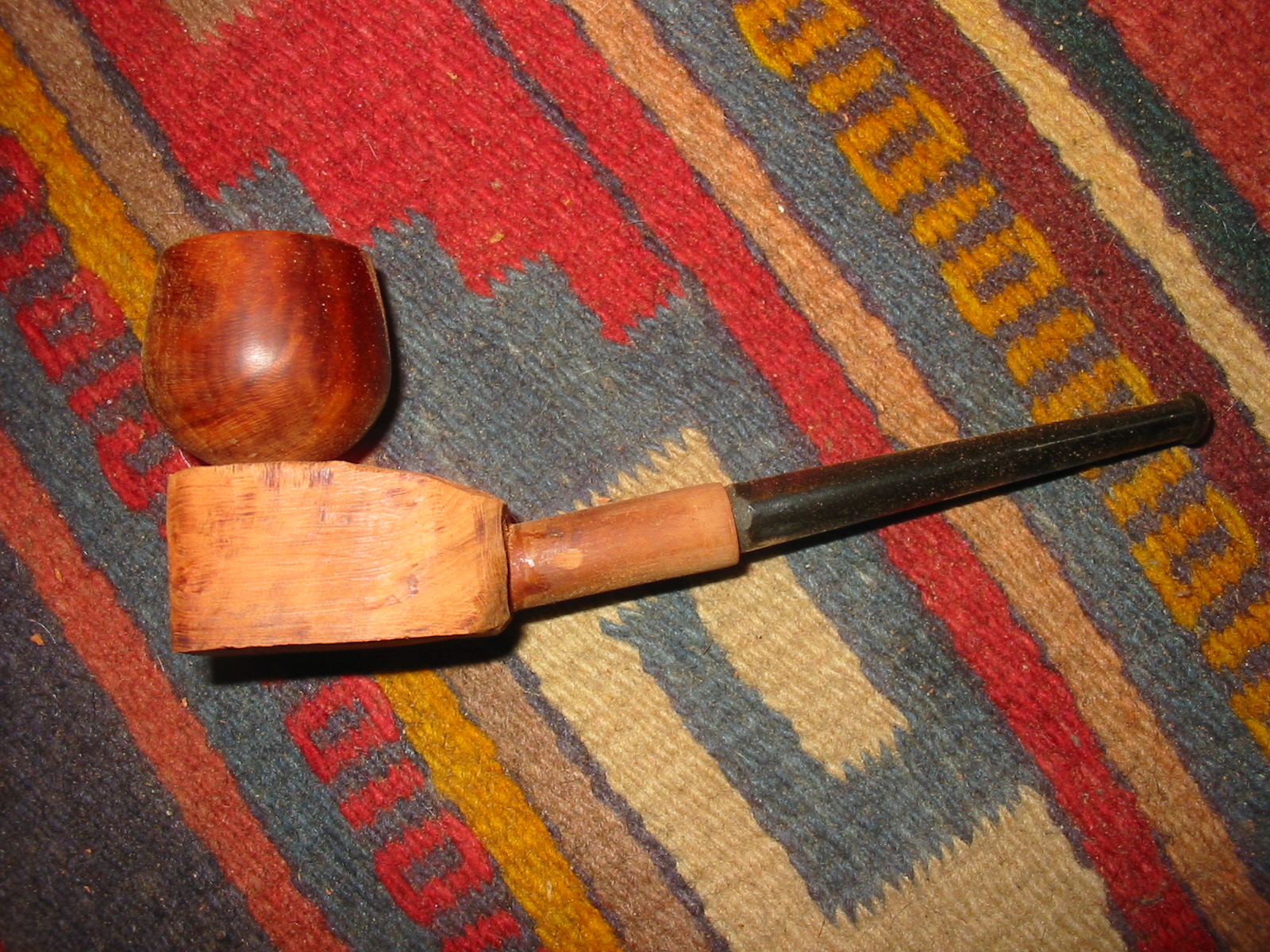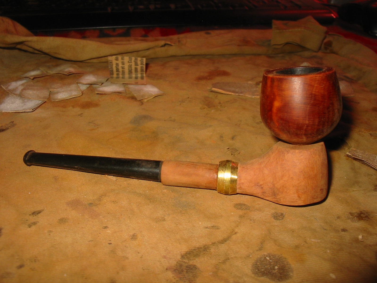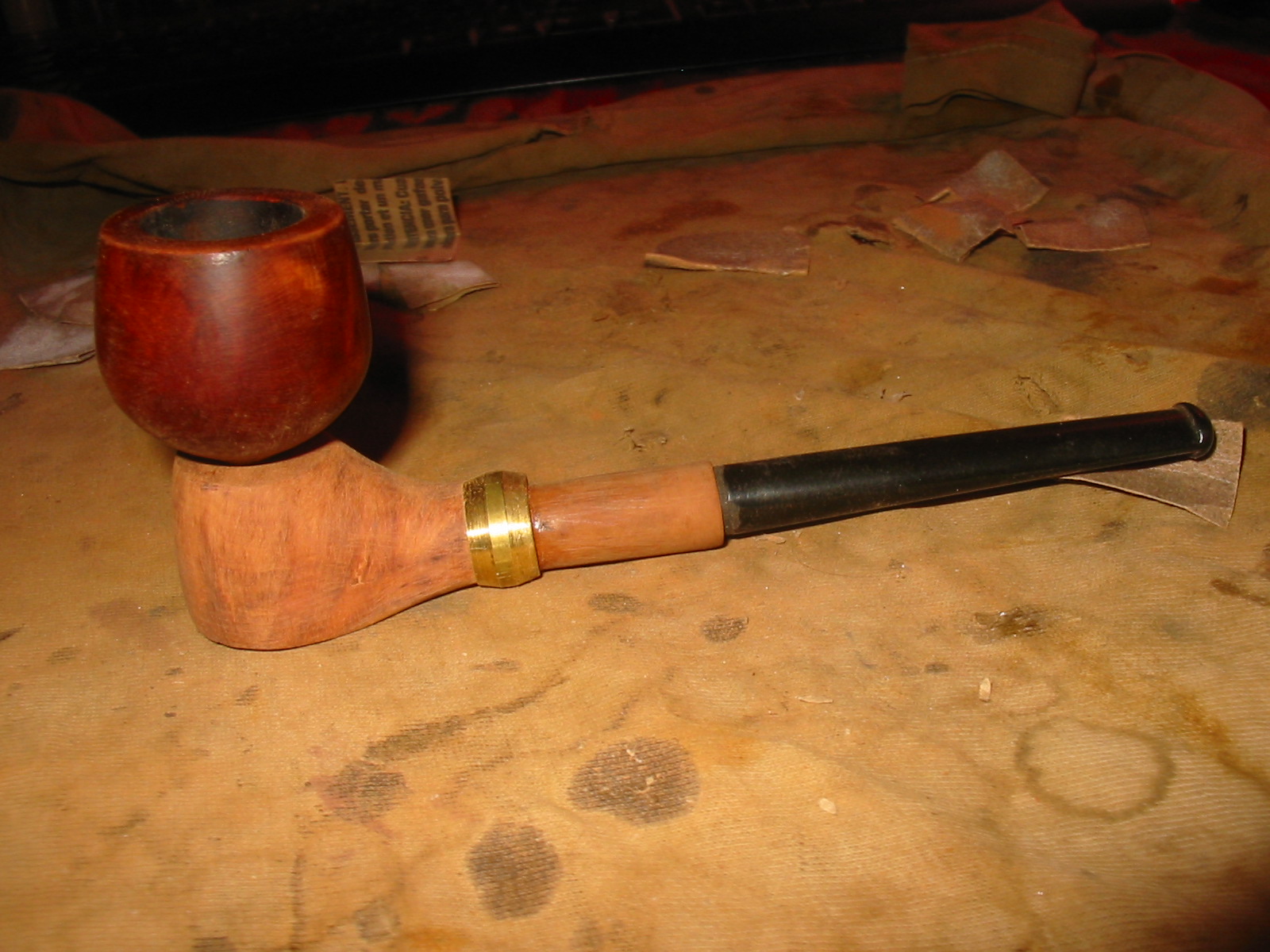 I have not created a Frankenpipe for a long time. I call them Frankenpipes with a tip of the hat to Mary Shelley’s grand creation Frankenstein. These remind me of her story what with the gathering of parts, “stitching” them together and breathing life into them. It is a thoroughly creative process I enjoy and I suppose there is always the possibility of crafting of a monster. Over the years I have crafted quite a few of these pipes and they tend to stay in my collection. You can search on the blog and see the variety of Frankenpipes that have come together. I find them incredibly enjoyable because they are very different from a restoration. Truly it is looking at a bunch of parts and imagining combining them into something that reflects the parts but as a whole it very different from any of them.