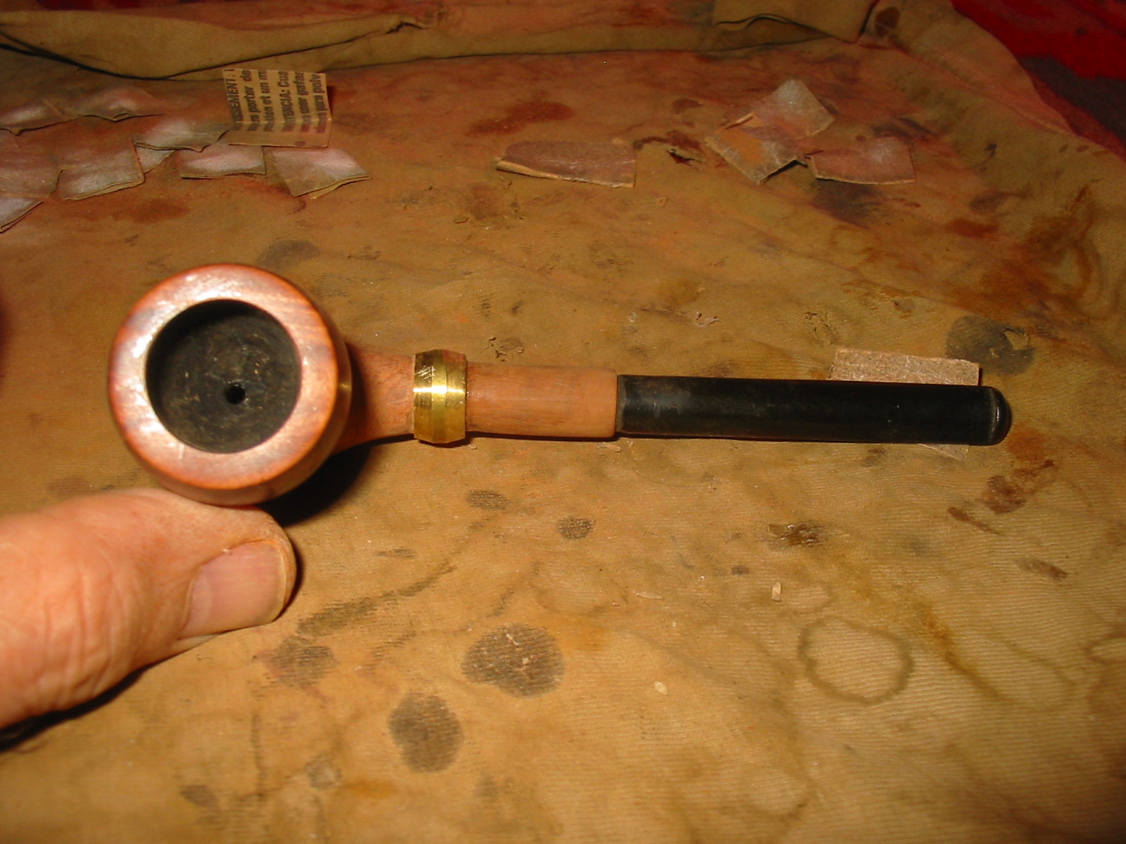 I was careful to leave the original Malaga stamp intact. I was not as concerned with the Imported Briar stamp on the right side of the shank. Progress is being made.