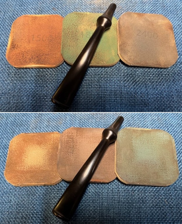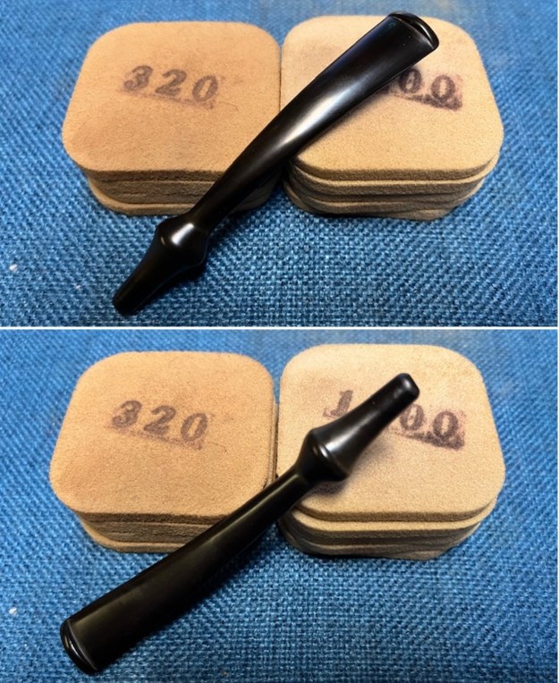I love watching the shine develop on the vulcanite as I polish it with micromesh sanding pads – dry sanding with 1500-12000 grit pads. I wiped it down after each pad with Obsidian Oil. I finished this part of the polishing by using Marks Hoover’s Before & After Pipe Stem Polish – both Fine and Extra Fine. I wiped it off with a soft cloth and gave the stem another coat of Obsidian Oil.